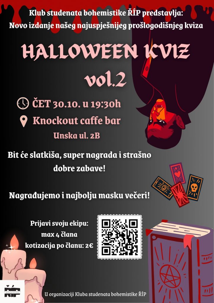 Ovogodišnju je kvizašku sezonu Klub studenata bohemistike ŘÍP otvorio sa novim izdanjem prošlogodišnjeg Halloween kviza – Halloween kviz vol.2. U organizaciji su sudjelovali Marta Böhm, Kristina Horki, Lara Nazić, Luna Šarić i počasni gost Leo Smojver.